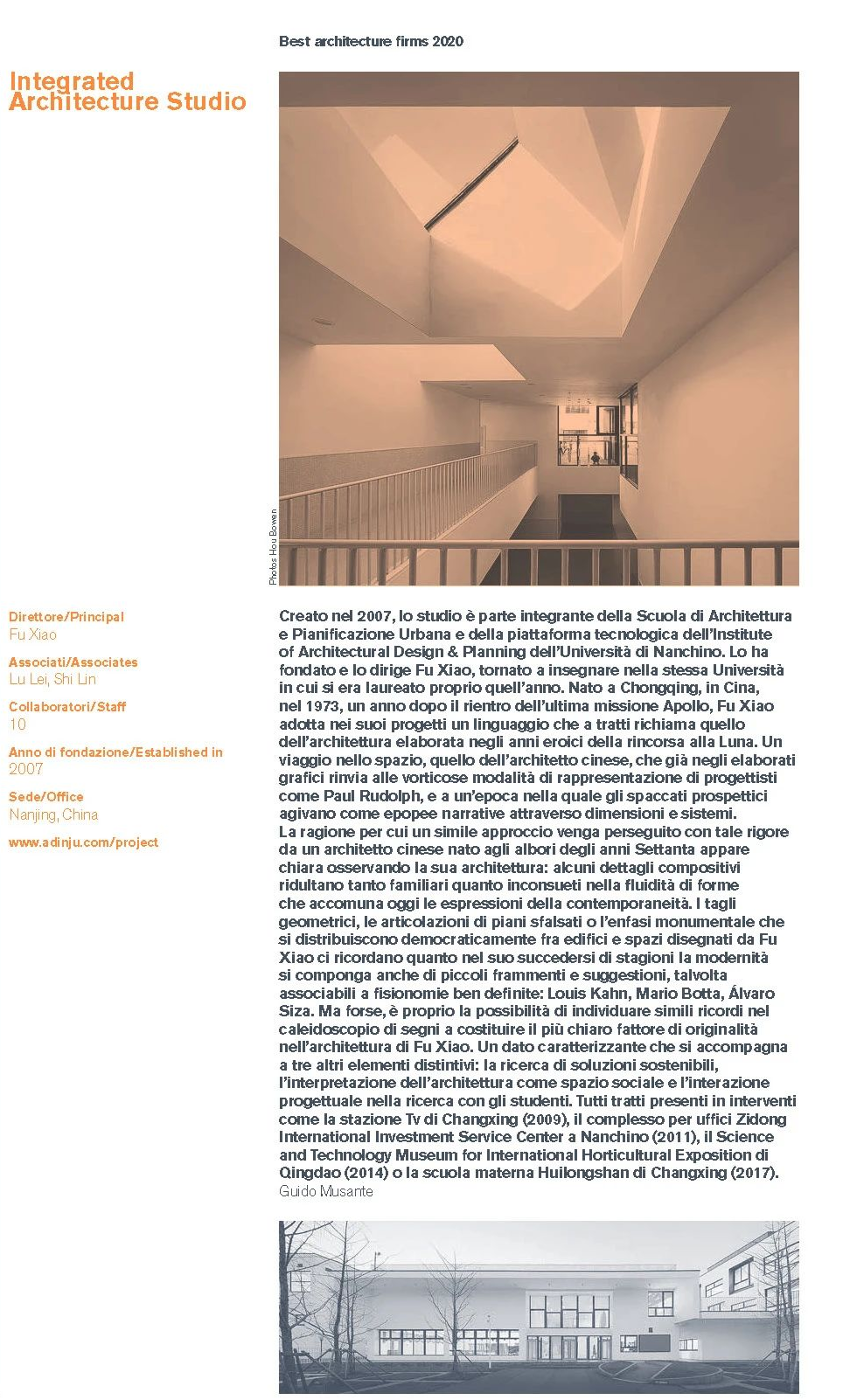 喜讯 ▏我院总建筑师傅筱教授工作室-集筑建筑入选Domus年度全球50最佳建筑事务所